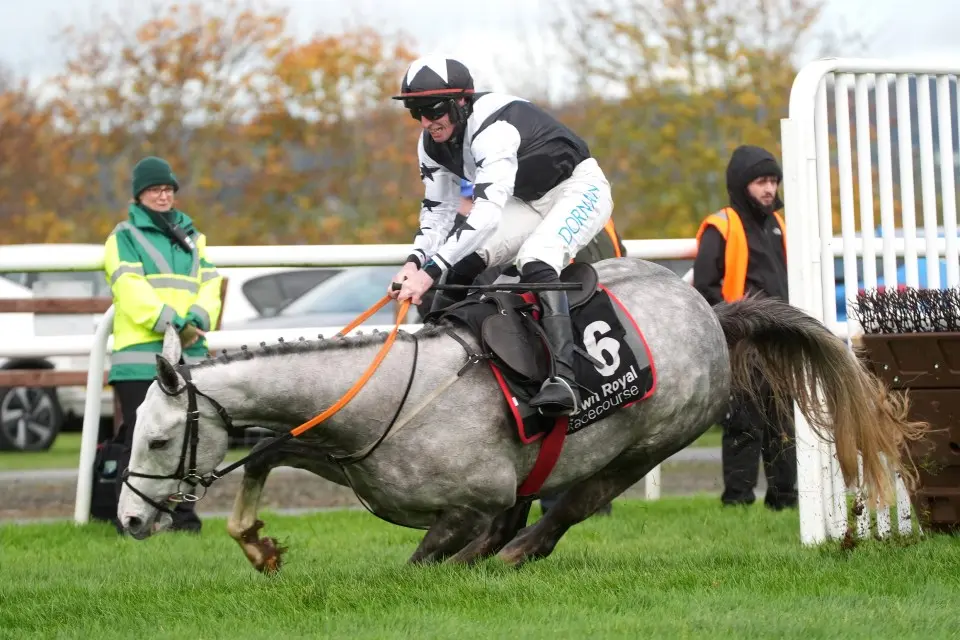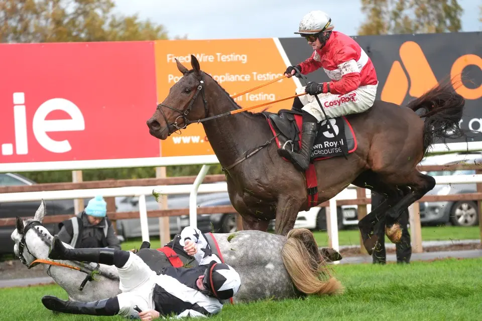In one of the most bizarre and chaotic finishes ever witnessed in National Hunt racing, the opening race at Down Royal on October 31, 2025, turned into a spectacle of falls, rule breaches, and an improbable long-shot victory that left pundits and fans alike questioning if it could really have unfolded that way. The Irish Stallion Farms EBF Maiden Hurdle over 2m6½f was meant to be a straightforward affair dominated by Gordon Elliott’s heavily backed favorites, but a dramatic tumble at the final hurdle triggered a chain of events culminating in a 999-1 in-running winner, a jockey remounting against regulations, and subsequent bans that underscored the strict governance of the sport.