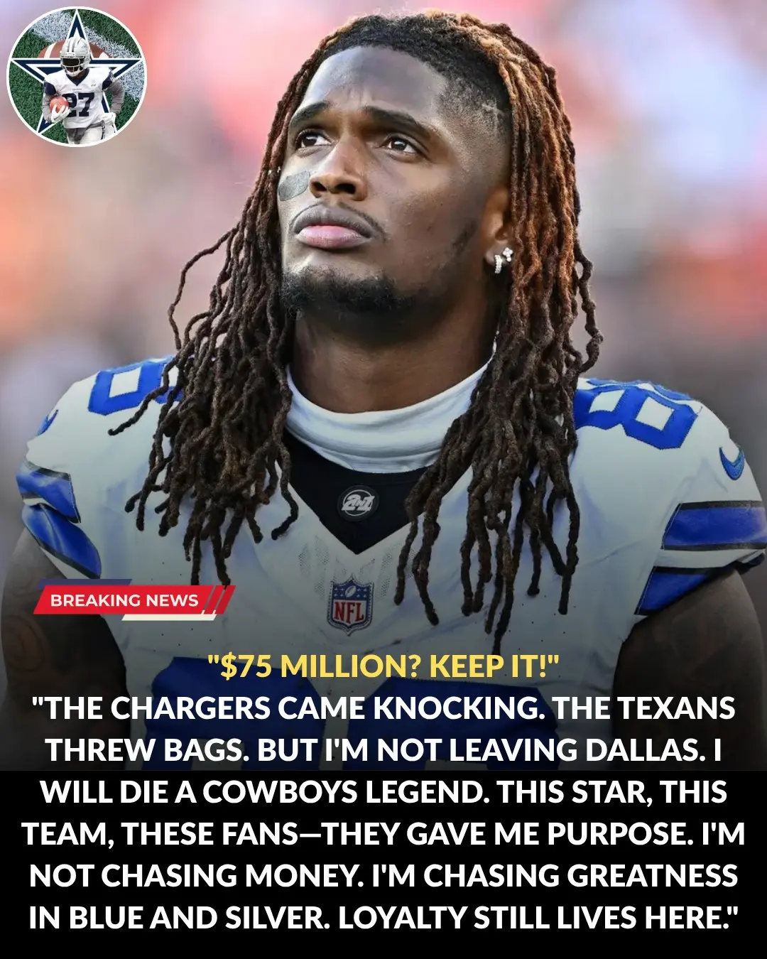 In a move that has sent shockwaves through the NFL, Dallas Cowboys wide receiver CeeDee Lamb has turned down staggering $75 million offers from the Chargers and Texans. The star player chose loyalty over money, vowing to remain with Dallas forever.