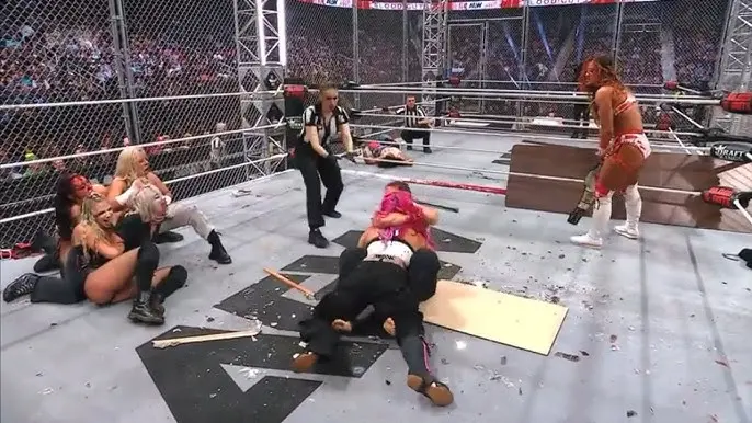 Nia Jax led the charge, using her sheer power to overpower Ripley first. Asuka and Kairi Sane, known as The Kabuki Warriors, focused on IYO SKY with rapid strikes and aerial maneuvers. Lash Legend joined in, targeting Alexa Bliss with vicious slams that left the victims reeling.