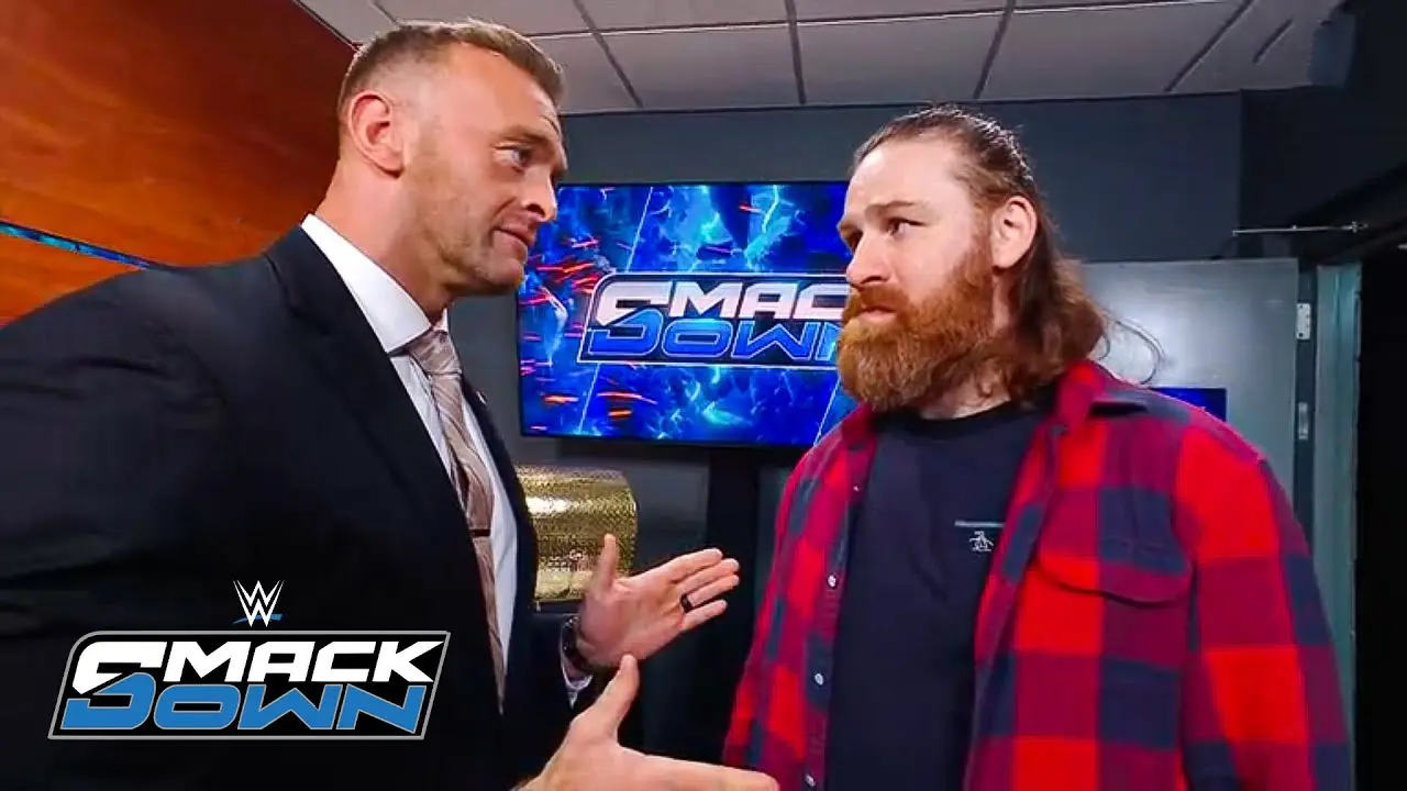 NICK ALDIS FORBID SAMI ZAYN FROM RINGSIDE BACKSTAGE WWE SMACKDOWN!
