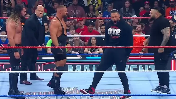The attack was swift and merciless. Reigns speared Bron Breakker through the barricade, while Rollins delivered a series of stomps to Heyman. The crowd chanted “OTC” – One True Chief – as Reigns stood tall. This moment reversed recent dynamics where Heyman had sided with Breakker against Rollins.