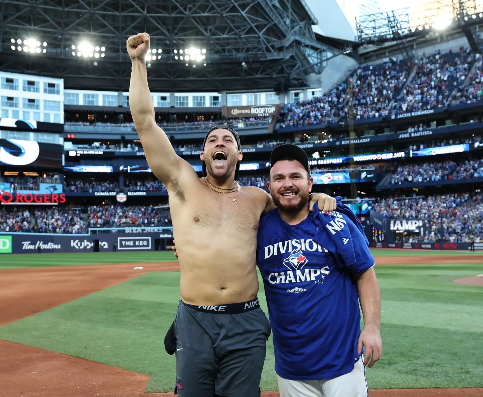 The jumbotron operator, sensing something, cut from the replay of the final out to a live shot. Forty-nine thousand faces turned. A low murmur rose, then swelled. Springer kept walking, past second base, past the pitcher’s mound where teammates lingered in clusters of grief. Vladimir Guerrero Jr. looked up, saw them, and cracked the smallest smile. Bo Bichette tapped his chest twice. Even manager John Schneider, usually stoic after losses, lifted a hand in salute.