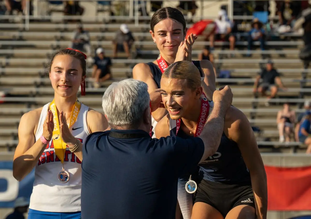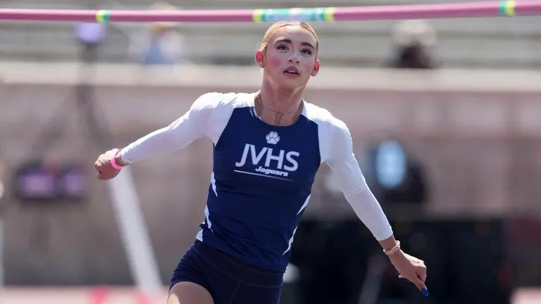 The junior from Jurupa Valley High School in Southern California had just dominated the girls’ events, securing podium finishes in long jump, high jump, and triple jump amid protests, airplane banners, and even threats from President Donald Trump to withhold federal funding from the state.